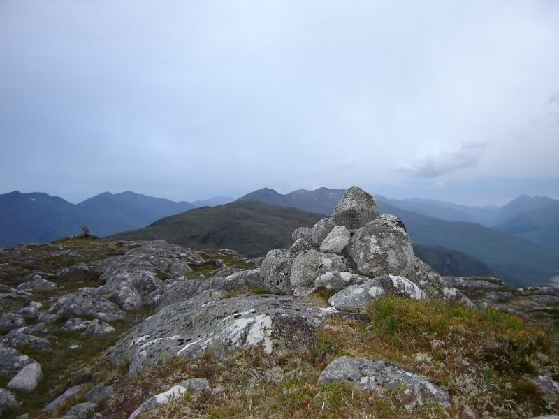 We reached the top of Meall Dubh just before 17:00 where there is both a small cairn and a really large cairn.