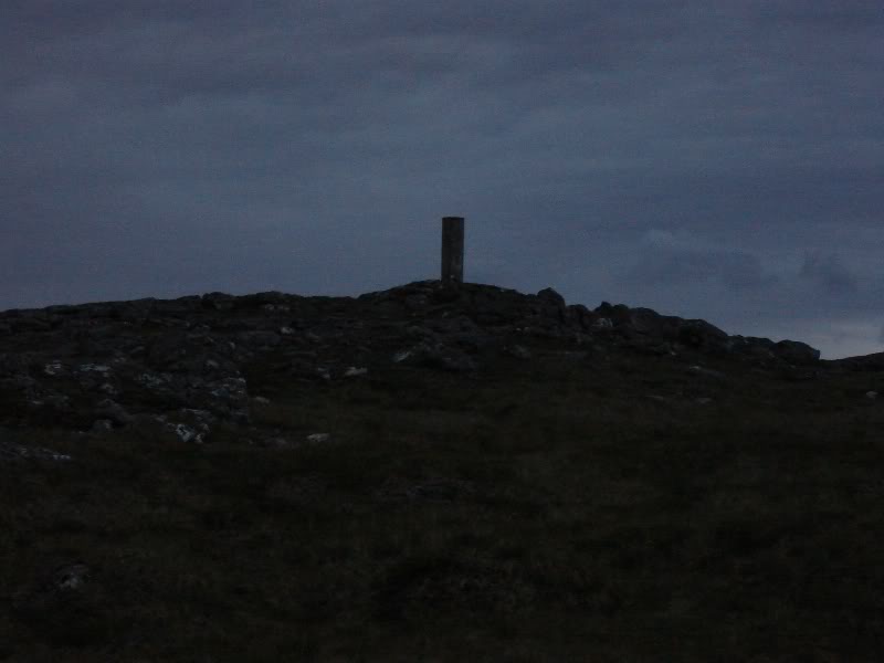 Until now the weather had been quite good. However, I could see that the forecast rain was on its way as the skies really began to darken. By the time I was approaching the summit trig point, just after 22:00, it was really getting dark, the rain was starting and the wind was strengthening.