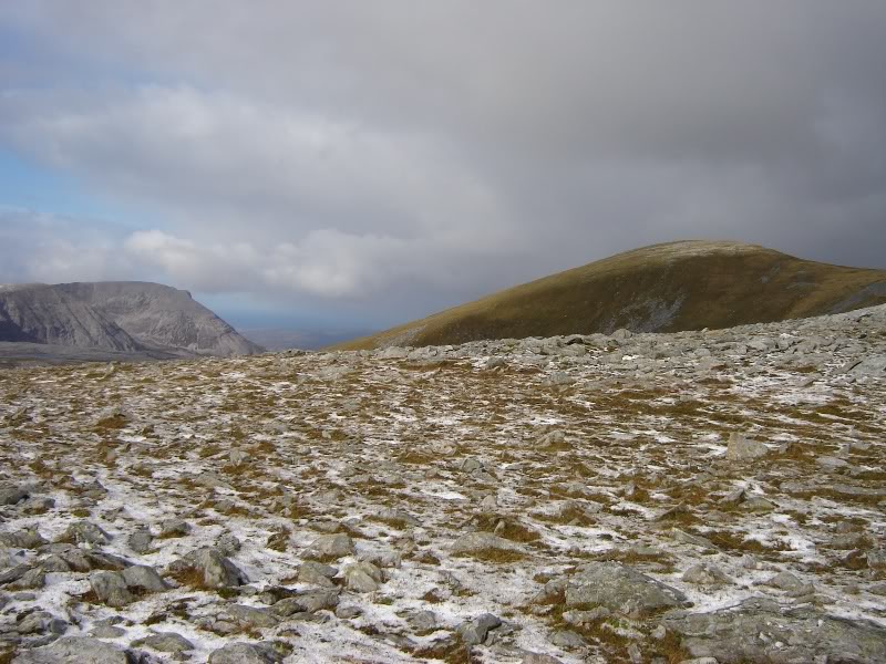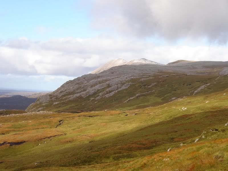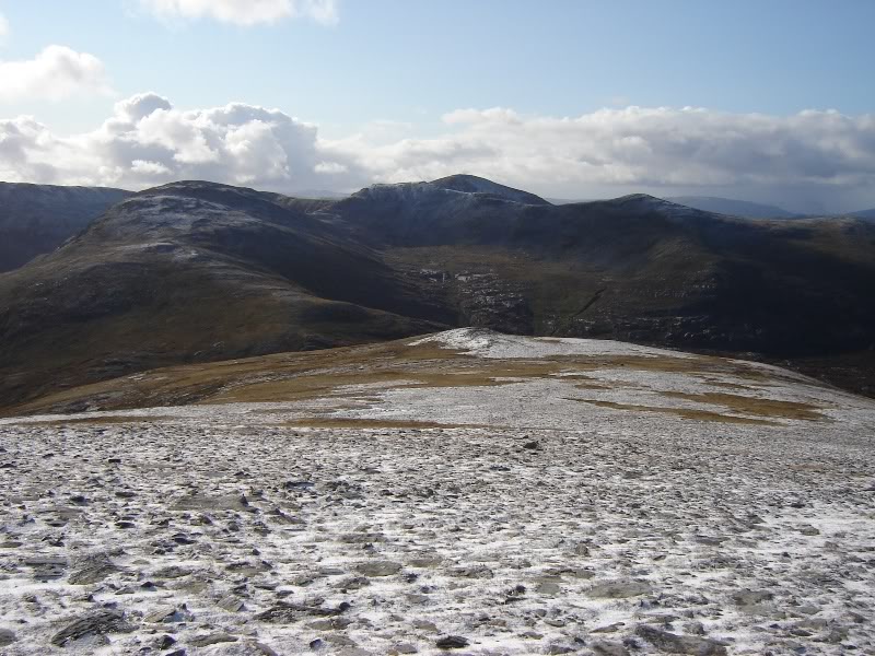 Looking towards distant bealach between Sabhal Beag and Meall Garbh: