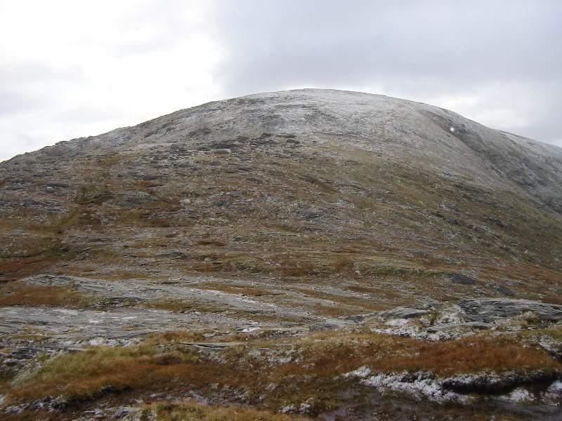 The going from Sabhal Mor to Meall Horn was mainly over quartzite stones and boulders. Didn’t take long to reach the large summit cairn of Meall Horn. Was disappointing that I got no views across to Arkle and Foinaven from the summit.