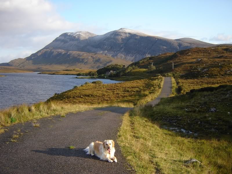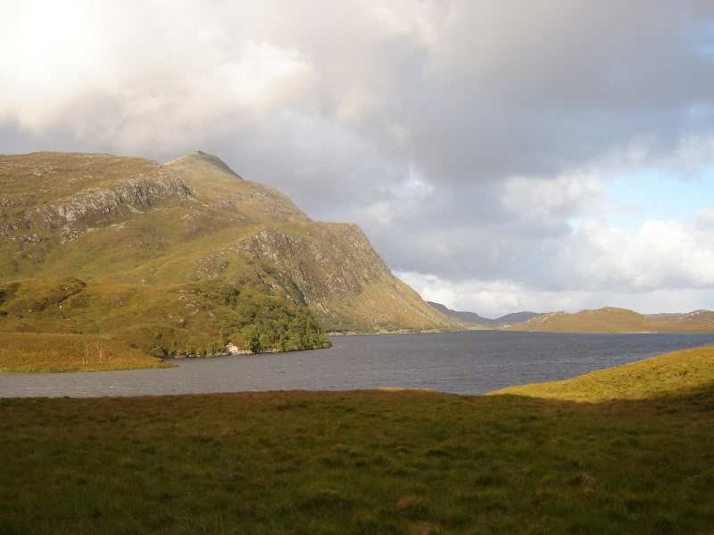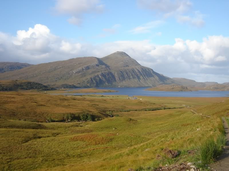 We followed the tarmac road and then the land rover track that skirts behind Loch Stack. Terrific views of two fine mountains (Arkle and Ben Stack) during this walk-in.