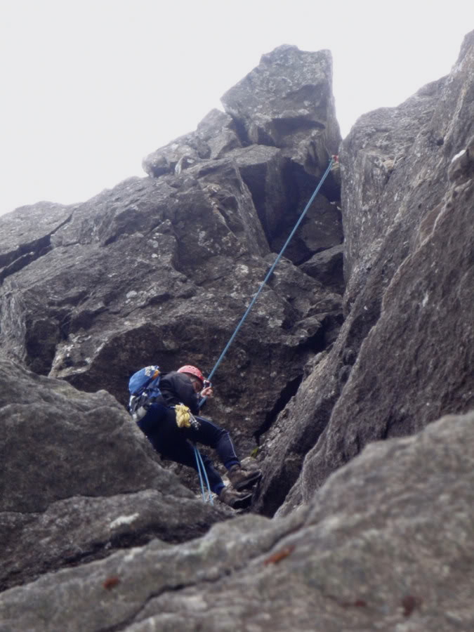 Adrian about to abseil off the third pinnacle: