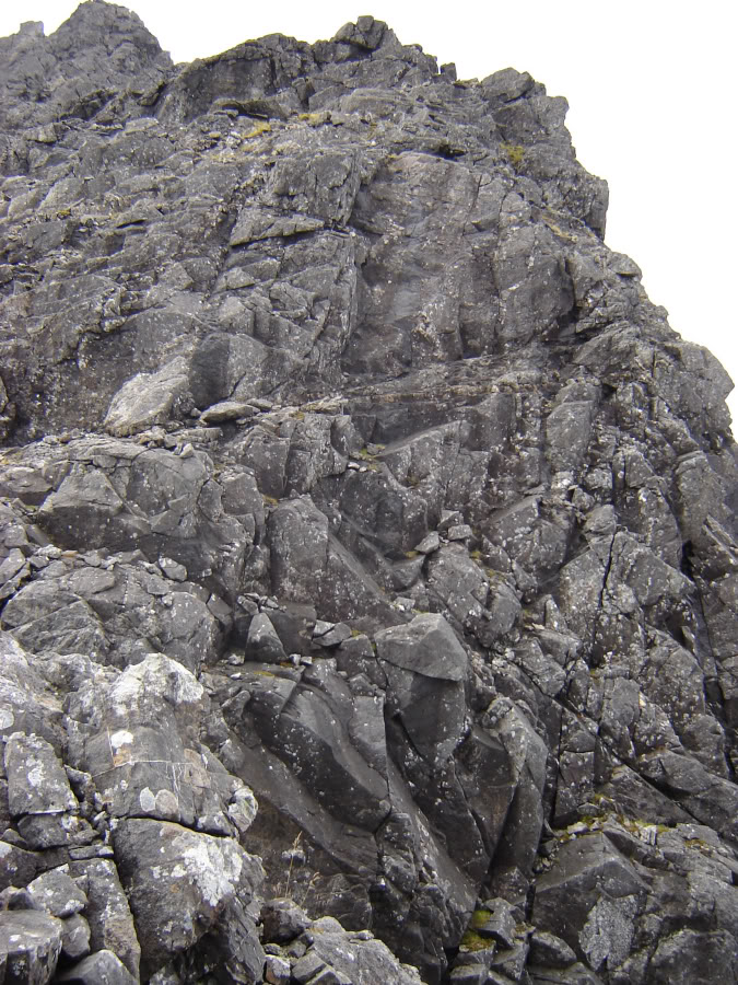 the ledge that skirts Sgurr nan Gillean joining the West ridge above its chimneys. We then followed the remainder of the West ridge to the summit.