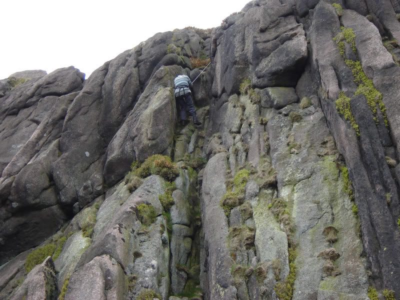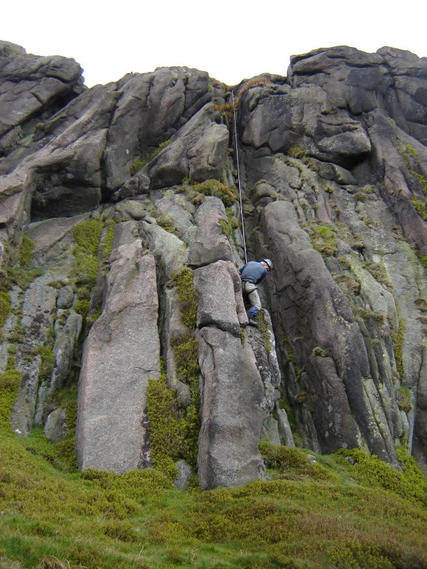 On reaching the top, I set up anchors near the highest point on the tor. I then lowered off Club members one by one (similar to abseil but with me in control of descent).