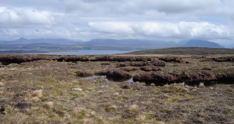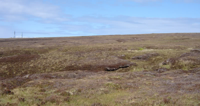 After walking 0.5km, I saw what I thought was a head pop above a peat hag. I made directly for the hag and as I got closer an elderly gentleman, armed with a rifle, popped out to say hello. I asked what he was shooting. He responded, “Not much today”. We got chatting. His first question was “Am I lost?”. I replied, “No, I am heading for the top of the hill.” He looked a bit bewildered and advised, “Lots of hags up there”. I responded, “Thanks, I'm used to hags.” We got chatting about the different views and he advised, “It is good to sit up here at night as you can see the lights of Stornoway from the hill”. After bidding farewell I was on my way.