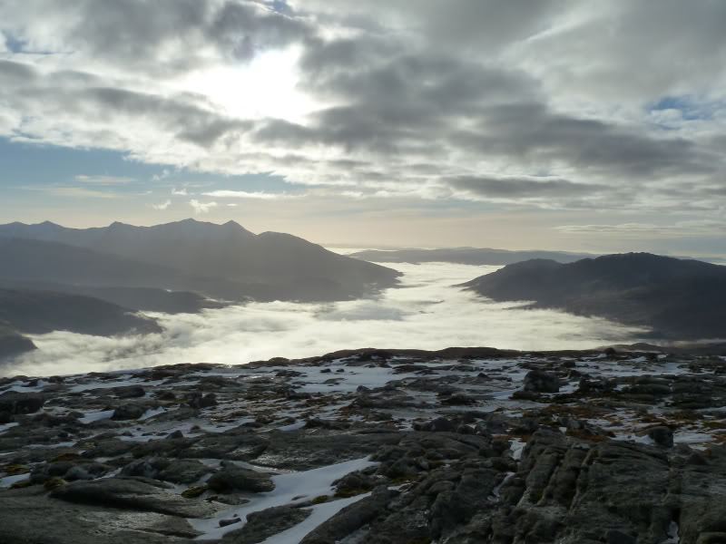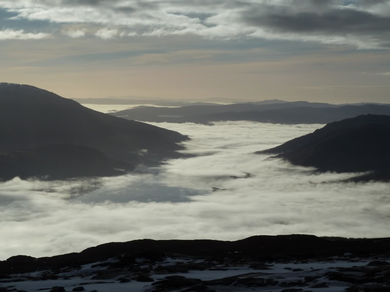 Inversion-covered Loch Etive from summit of Beinn Trilleachan: