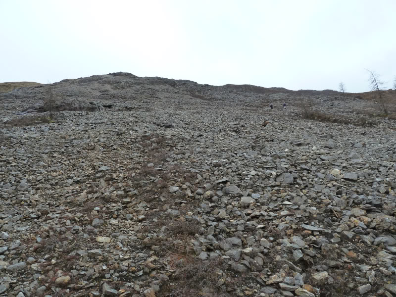 through a vast number of stones and small rocks. Slag from the old mines. The