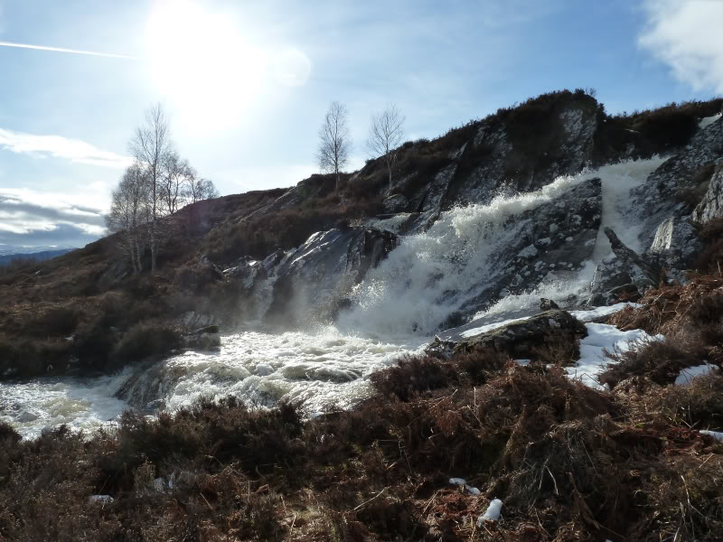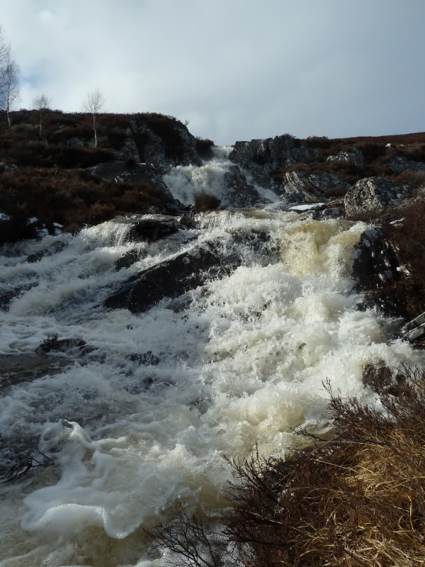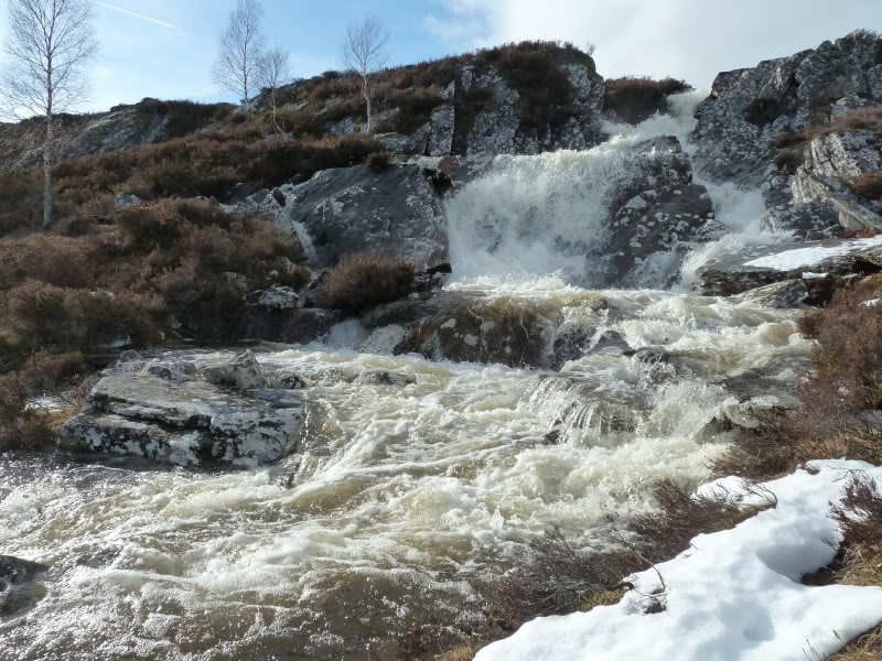 Was impressed with the Allt Coillte waterfalls, raging with all the snow-melt. These falls aren’t even marked on the map!
