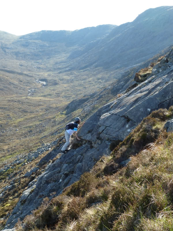 We ascended 150m or so to the base of the scramble before scrambling up the steep slabs.