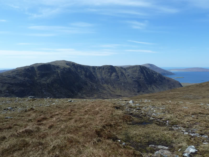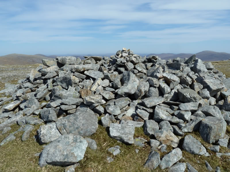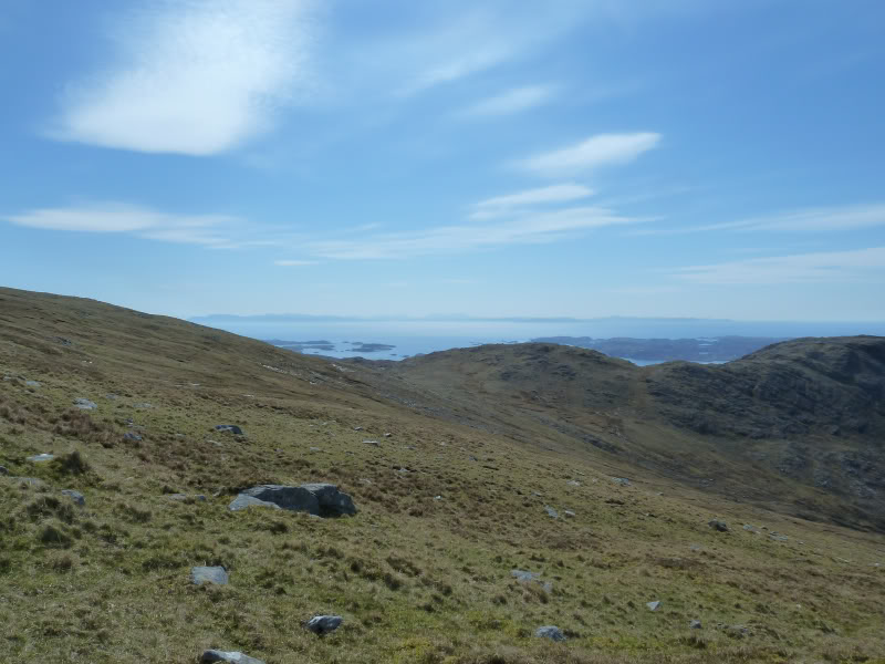 I could see the whole of Skye including the Red and Black Cuillin. I could make out a hazy Rum behind Skye. Beyond Harris I could make out North and South Uist. The Shiant Islands looked really close and out to sea, on the opposite side, I could just make out three of the islands of St. Kilda.