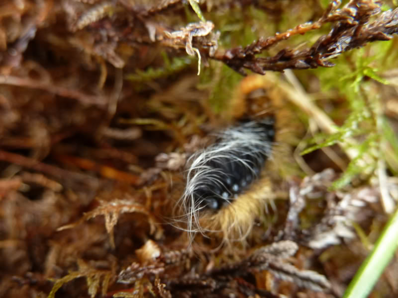 During my ascent, I spotted an interesting caterpillar - long white hairs on top, long orange hairs below with white spots along its side.