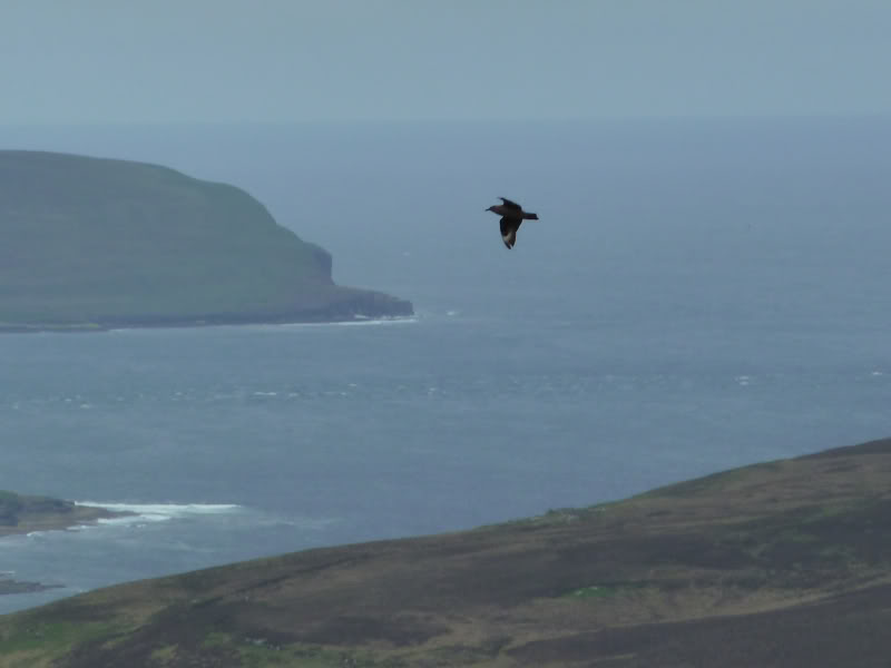 In the distance, I saw a really large bird. At first I thought it was some kind of raptor, however, as it was joined by a second and then a third and they began to come closer I reckoned they were Great Skuas.