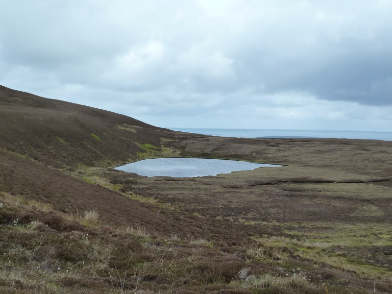 I decided to leave the summit when the rain started. I followed my in-bound route back as far as the col between Blotchnie Fiold and Knitchen Hill but then decided to descend towards Loch of Knitchen.