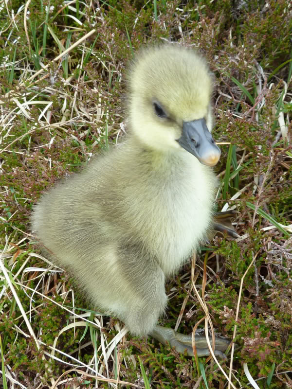 the reason why. Four young goslings walking across the hill. Cute or what?