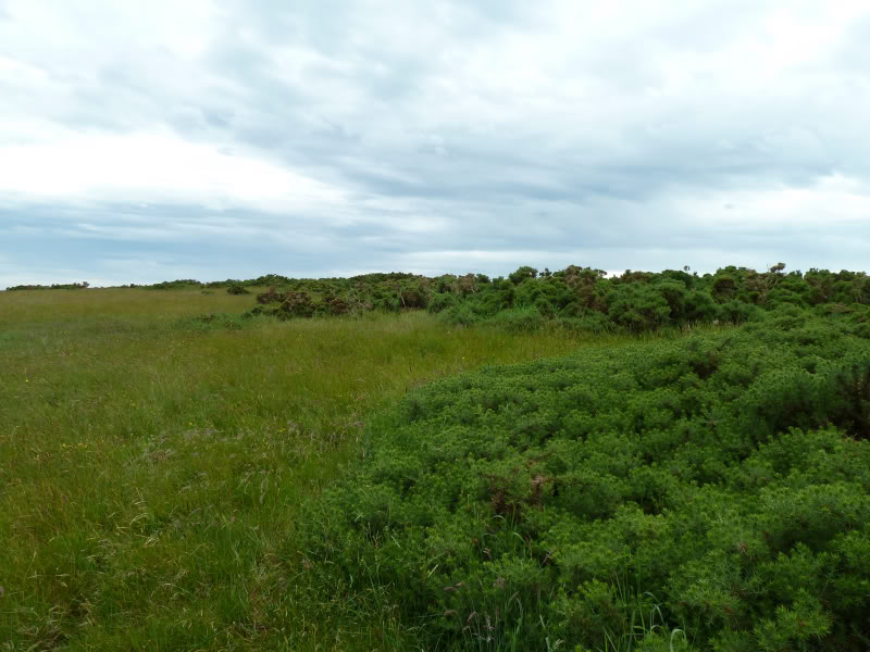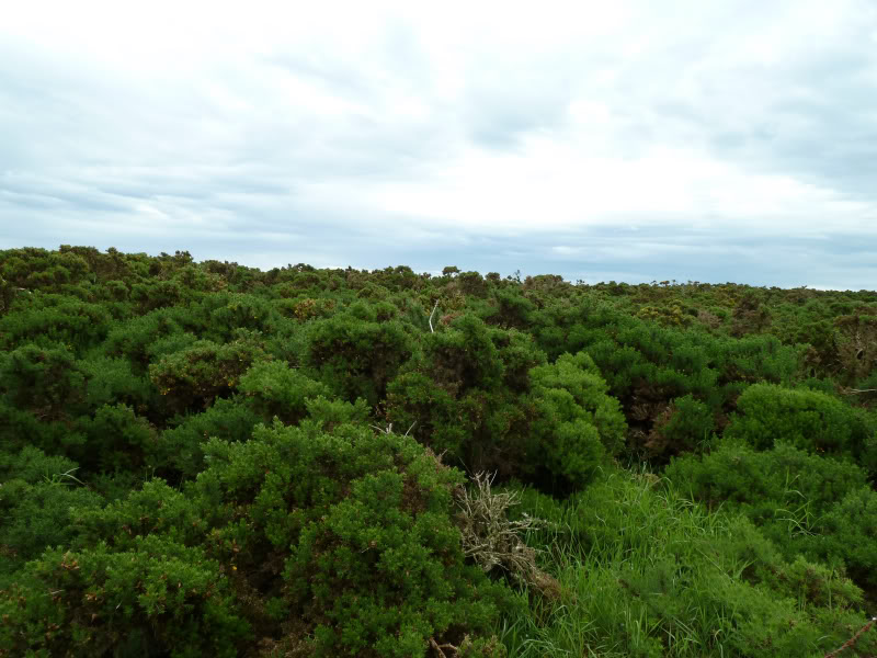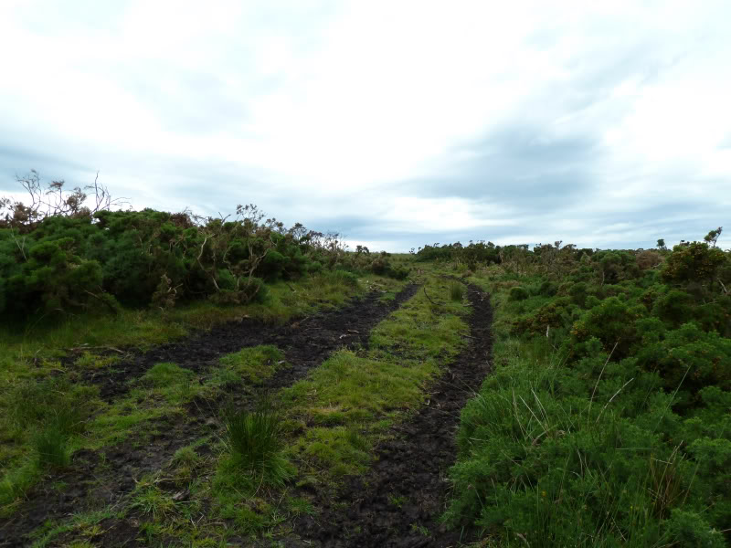 I traversed right around the back of the gorse until eventually reaching a track leading towards the summit. I had to climb a barbed-wire fence en-route.