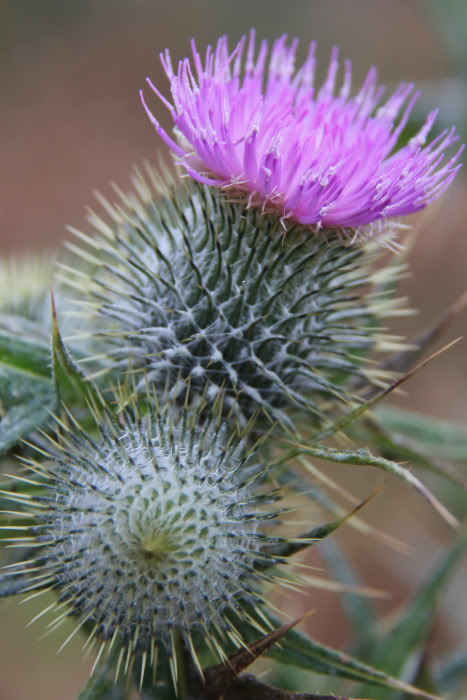 While walking along the forest track, I was a bit surprised to see a thistle still in bloom. This provided me the first opportunity to try out a close-up with my new camera.