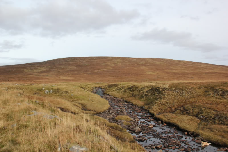 Meall Dubh come into view under 2km from the summit. No surprises where Beinn is