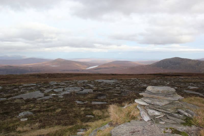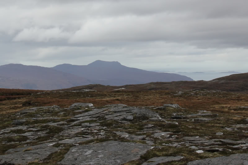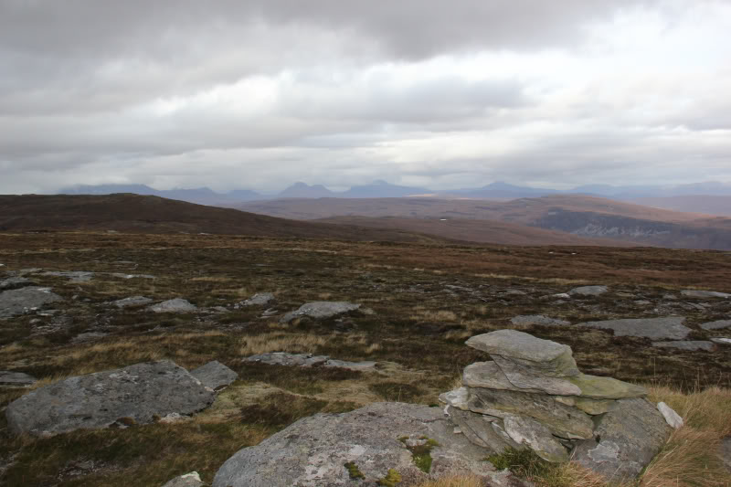 I had hoped to get good views of the Coigach and Assynt hills from the summit. Unfortunately, it was a bit cloudy in that direction.