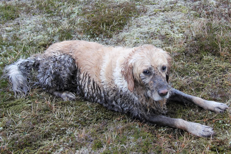 On the way back from the summit, Beinn went into the unnamed lochan near the summit. He then disappeared for about a minute. When he appeared again he was filthy