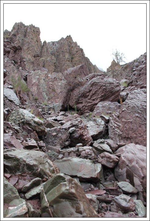 The rock colours are quite different from the rock back home. Much of the rock is metamorphic – slate and marble. The purple colour seen in many of the following photos is slate, the green colour is marble.