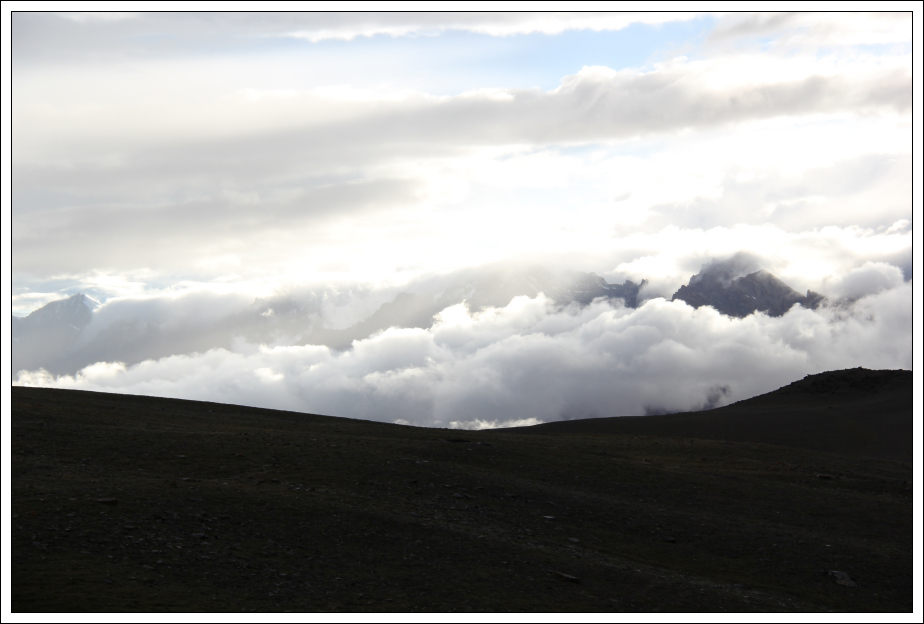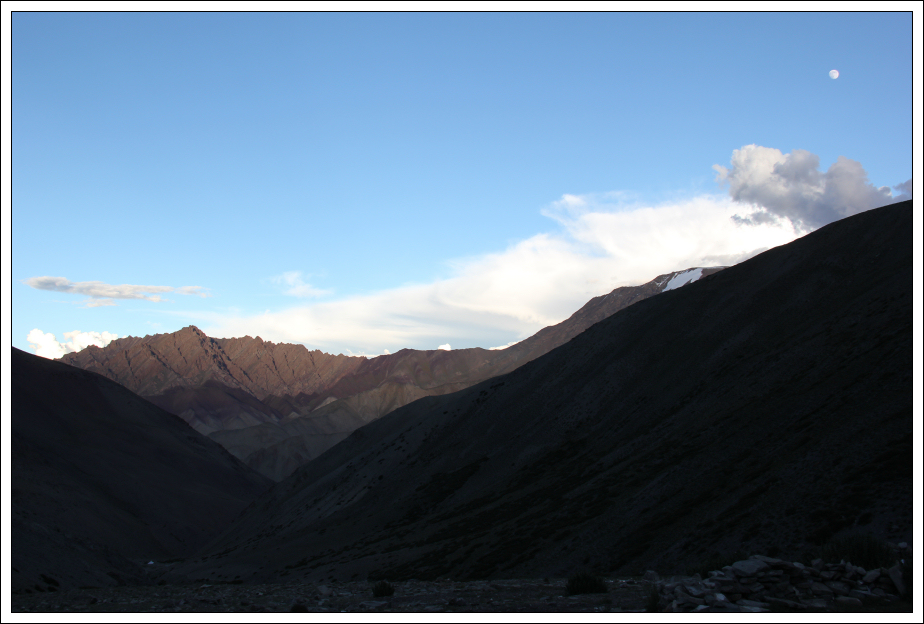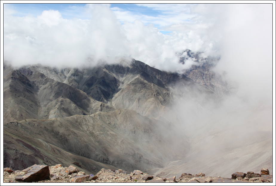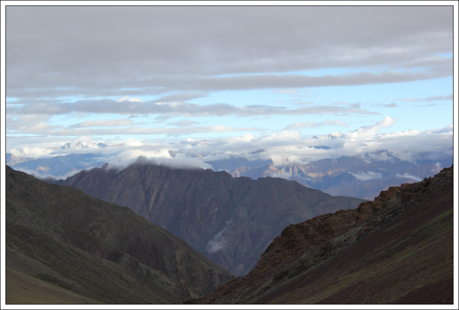 After returning to camp, the weather started to improve such that we caught the odd fleeting view across to the Zanskar range.