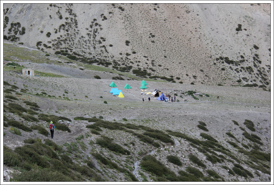 It was nice to look down on our third night’s camp during the descent of Exodus Peak. Our third night’s camp was at circa 4850m.