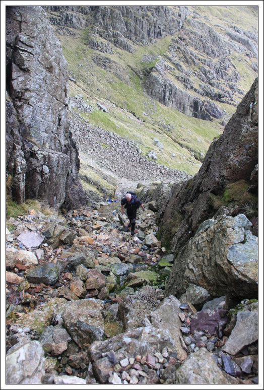 Circa 100m below Mickledore we made our way across to the base of the rake leading up to Foxes Tarn.