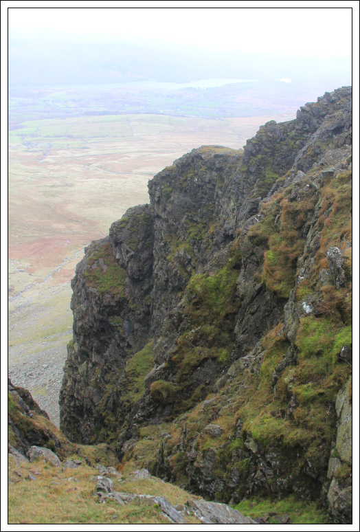 The walk along the cliff-edge from Buck Pike to Dow Crag was quite interesting. The crags on Dow Crag are impressive. There was a large raptor standing on the crag. It was too far away to identify but I guess it was a Buzzard.