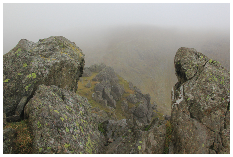 The final ascent to the summit of Dow Crag was an easy scramble albeit the rocks were quite wet and slippery.
