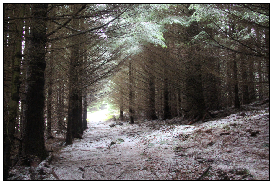 In the car park, I noticed a Forestry Commission sign advising that 'the track was closed' due to the reason 'the track was closed'. I chose to ignore the sign as there was no sign of any other vehicles and given the horrible weather, felling was unlikely.