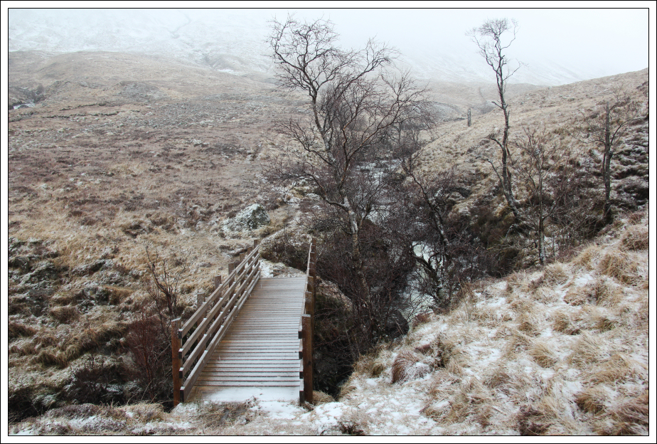 As the Abhainn Chia-aig was in spate, I was hoping that the bridge marked on the map was still there. Thankfully it was, but I had to climb over a six-foot deer fence to get to it. Not sure why there isn't a stile over the deer fence at the bridge!