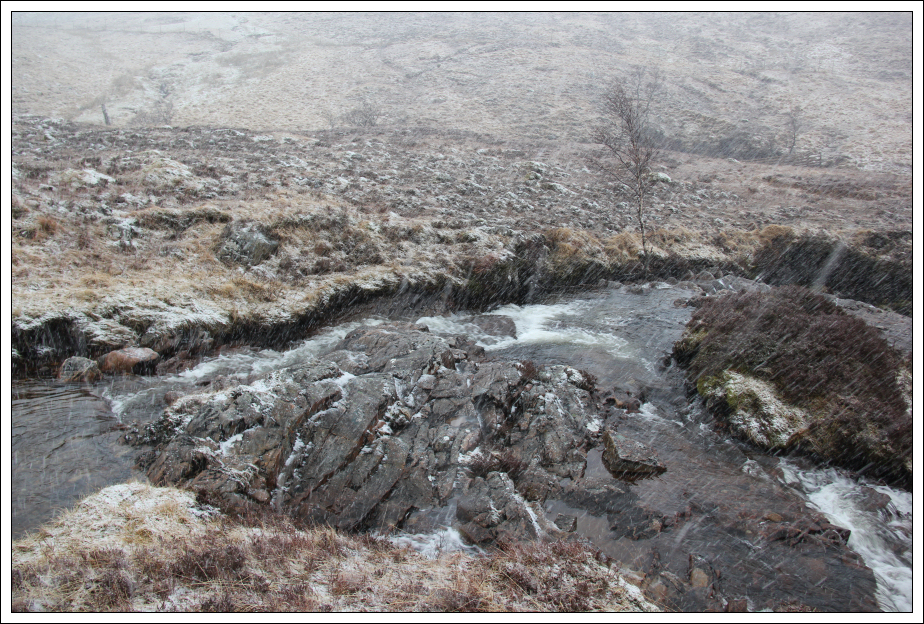 After crossing the bridge over the Abhainn Chia-aig, I had to cross the Allt Tarsuinn. No bridge for that crossing, just icy rocks.