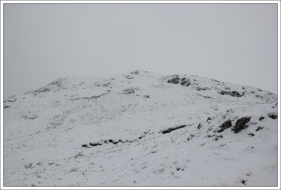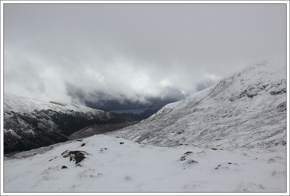 The most enjoyable part of the day was the ascent of Glas Bheinn. I was quite surprised to be walking up through 2-3 inches of fresh snow as only five days previous I ascended two Munros with less snow.