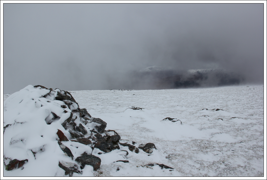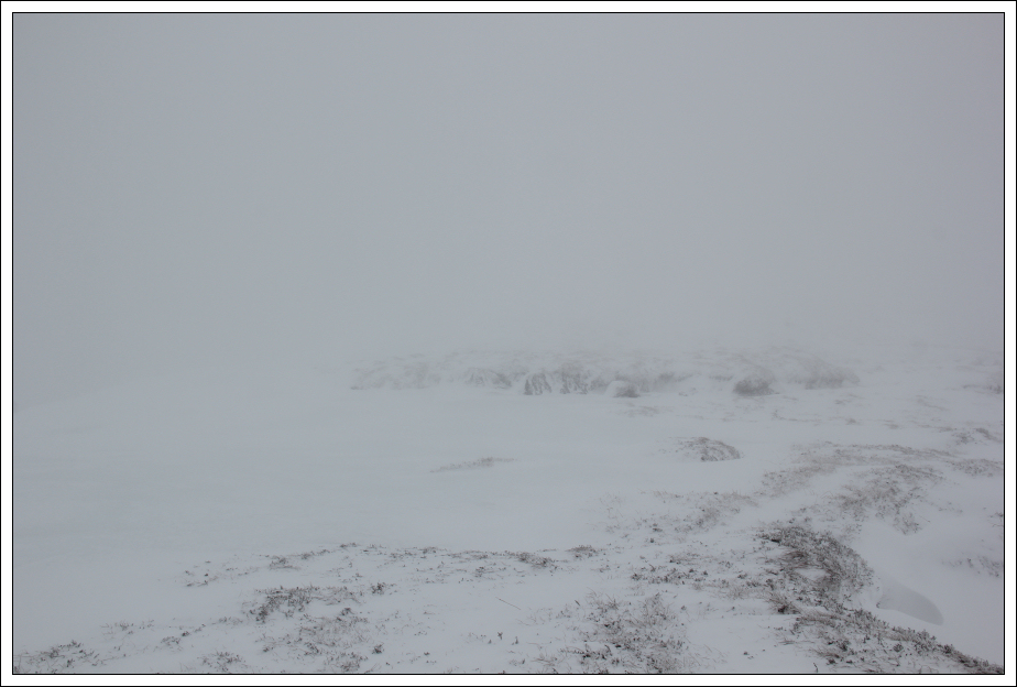 As well as heavy snow, hail and poor visibility, it was also quite windy up top. I could make out sizeable cornices