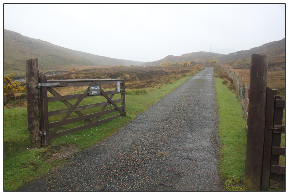 The road leading to Morsgail Lodge is really nice. It follows a lovely burn with lots of gorse which was in bloom and smelling strongly of coconut. I saw numerous birds during the walk in including a Dipper. Unfortunately, lots of Rhodedendron has seeded alongside the burn. The estate would appear to be trying and failing to control this alien species.