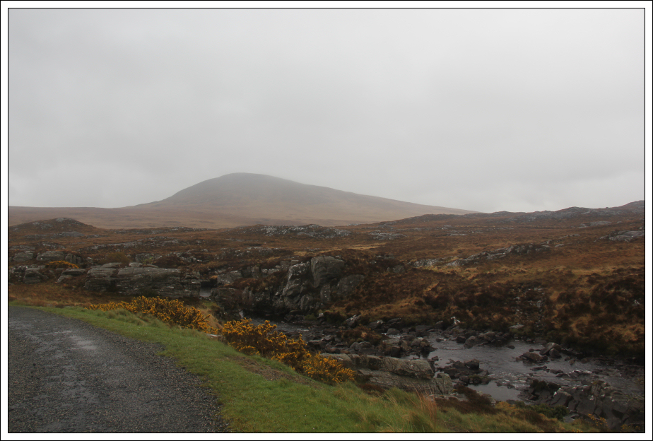 The weather today was poor. The cloud was down to almost road level and there was constant drizzle and rain showers throughout the day. I was a bit apprehensive about ascending great wee hills in near zero visibility. I therefore reluctantly set out to ascend Conostom and Coltraiseal Mor.