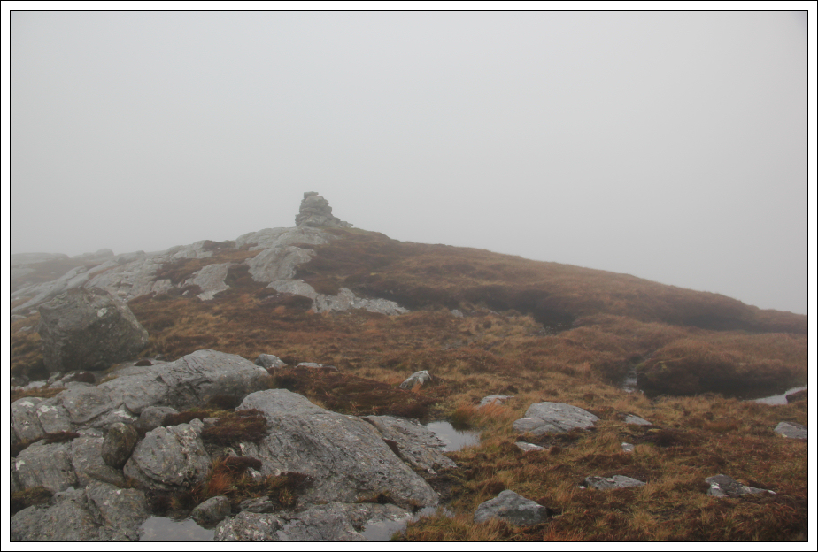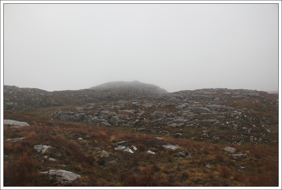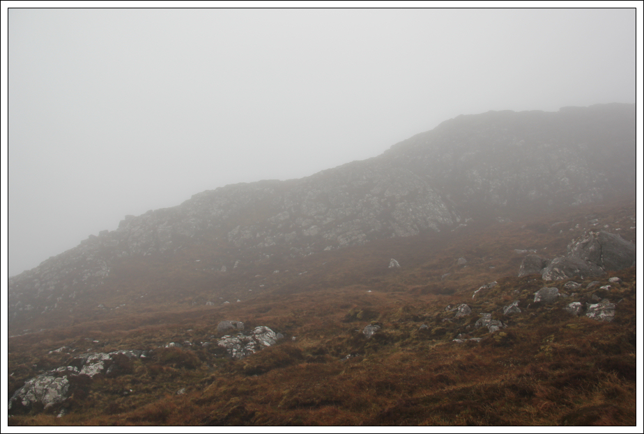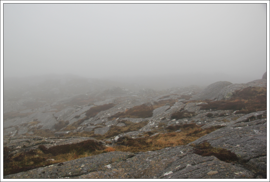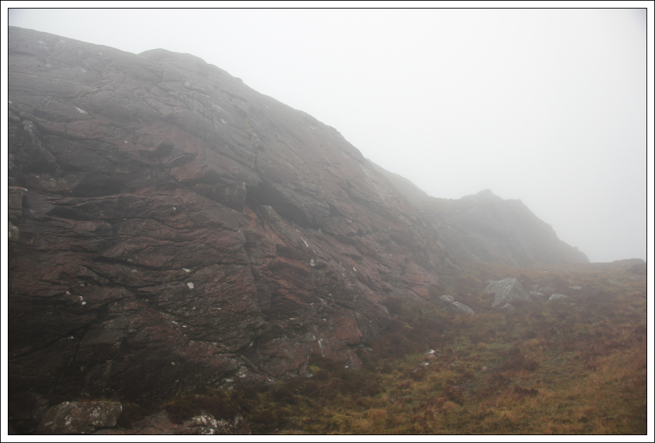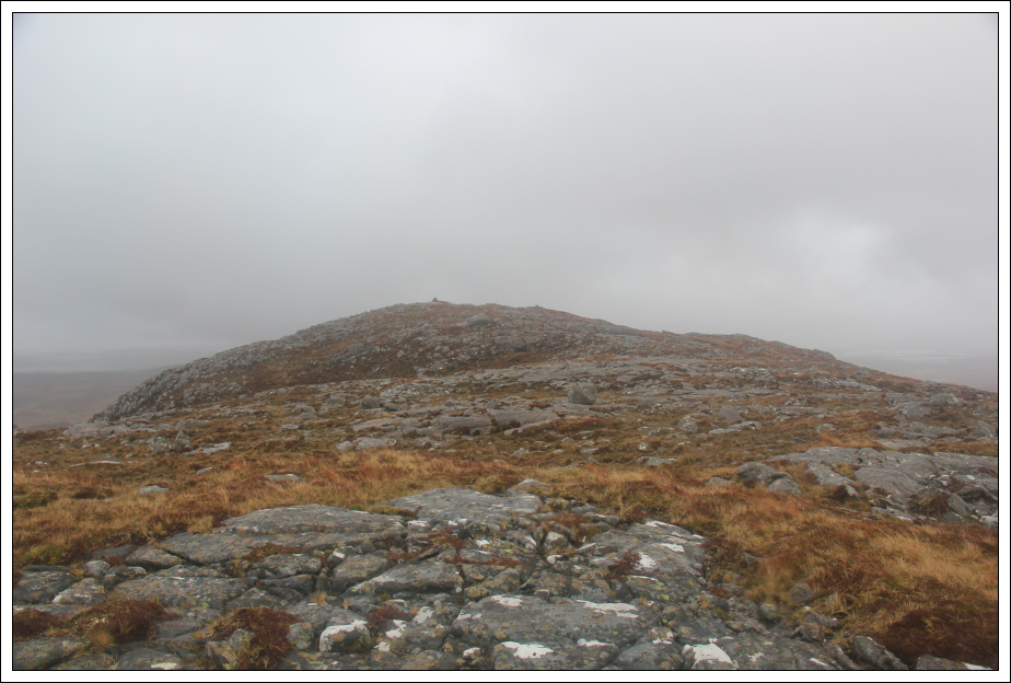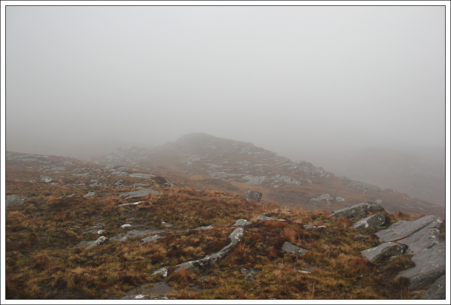 I decided to ascend via the ridge leading to Griosamol. The ascent to the summit of Griosamol was straight-forward in the mist.