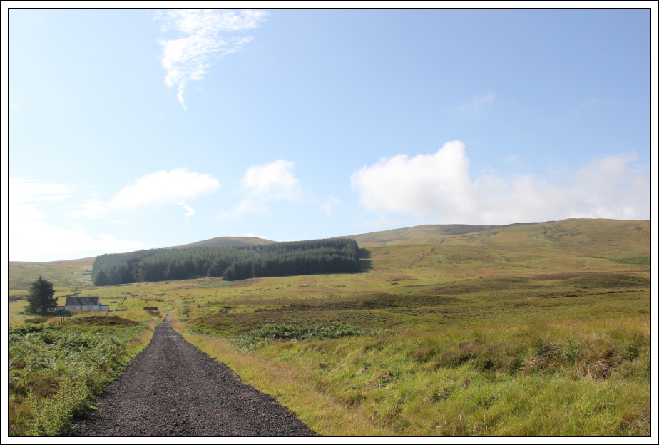 I initially followed the tarmac track leading to Carim Cottage before heading into a mix of grass, moss and tussocks.