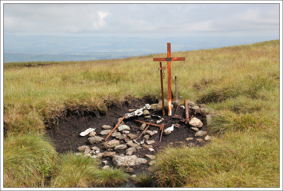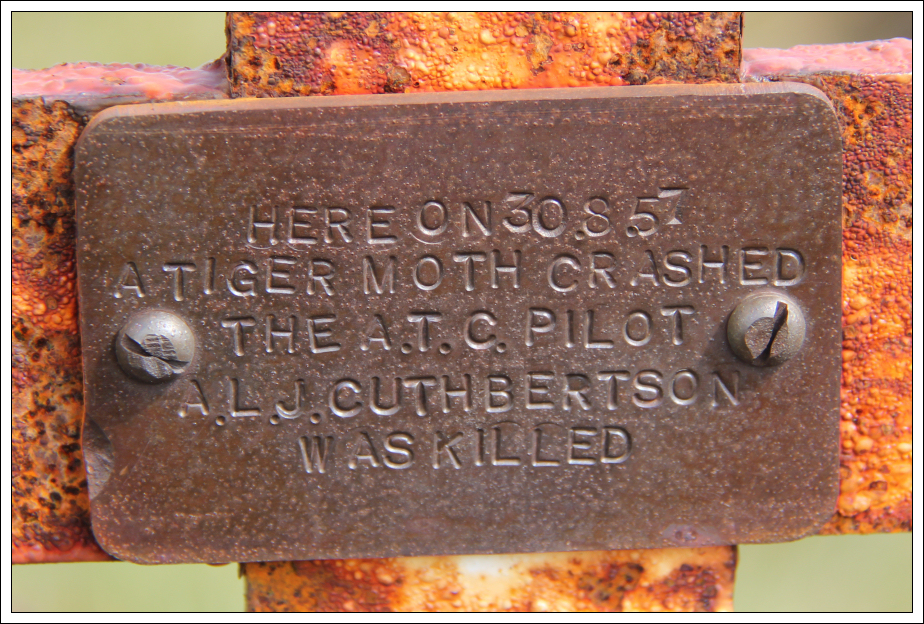 On descending from Blairdenon Hill towards the 616m top, I spotted an iron cross. A closer look showed that it was commemorating a Tiger Moth crash.