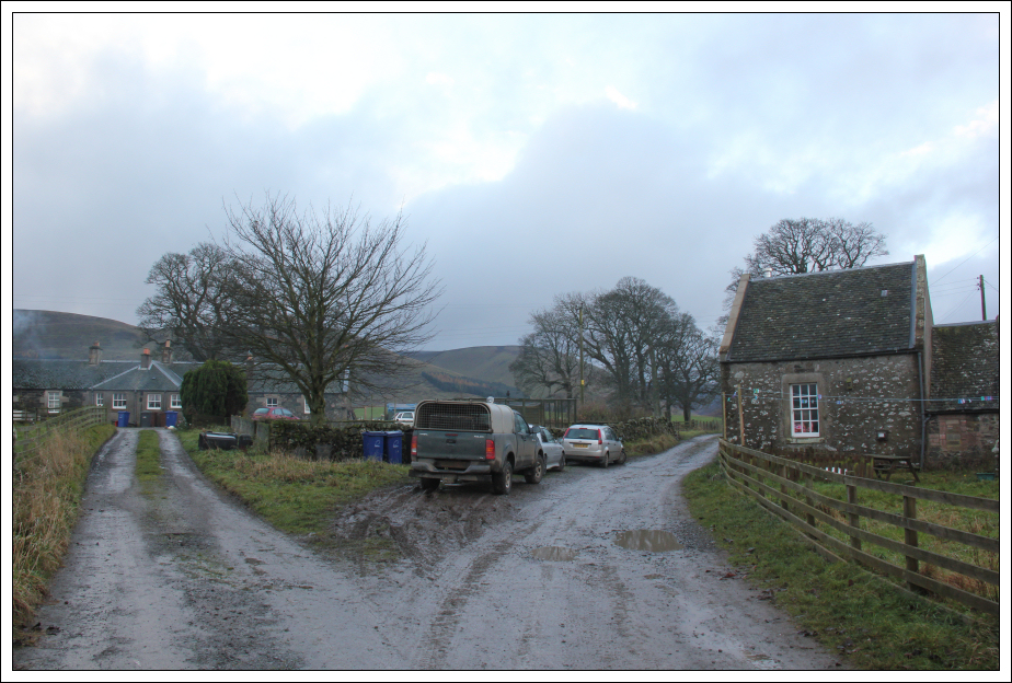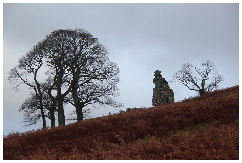 On reaching Gladhouse Cottage, I saw a man set off walking with numerous dogs. Nearby the cottage I stopped to take a photo of Hirendean Castle. This castle was apparently built in the sixteenth century.
