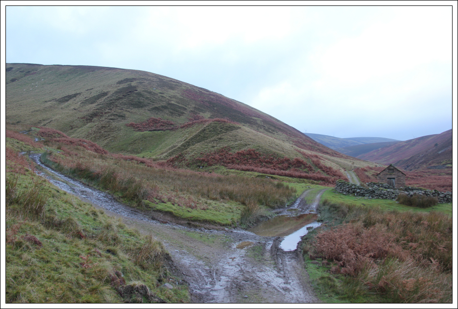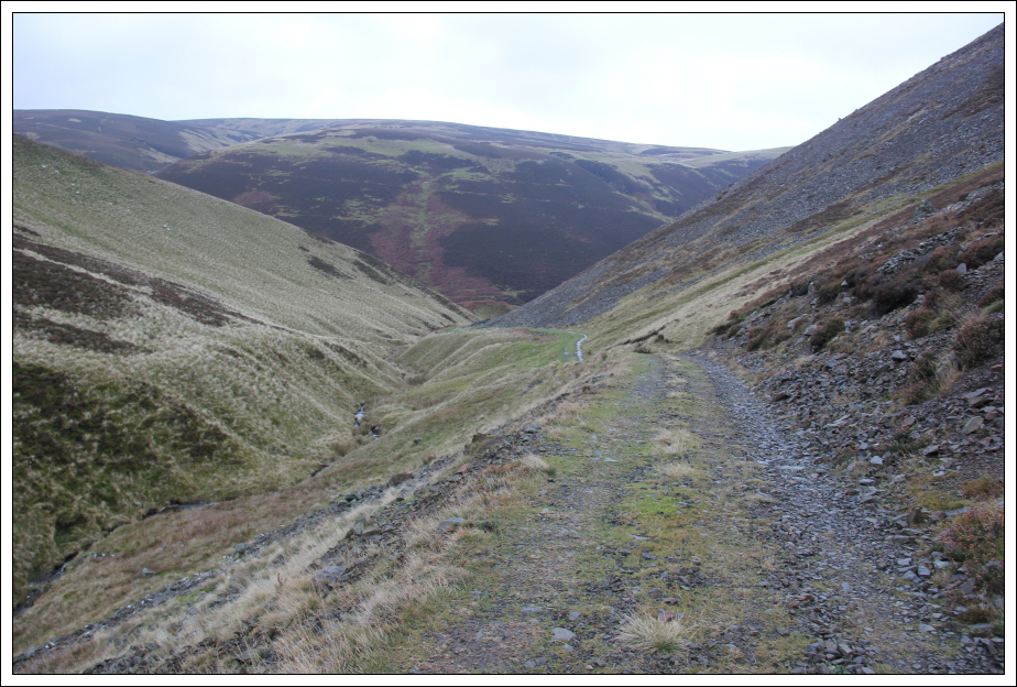 The weather and visibility today weren't perfect but at least it was dry. The excellent track made for fast progress along the glen.