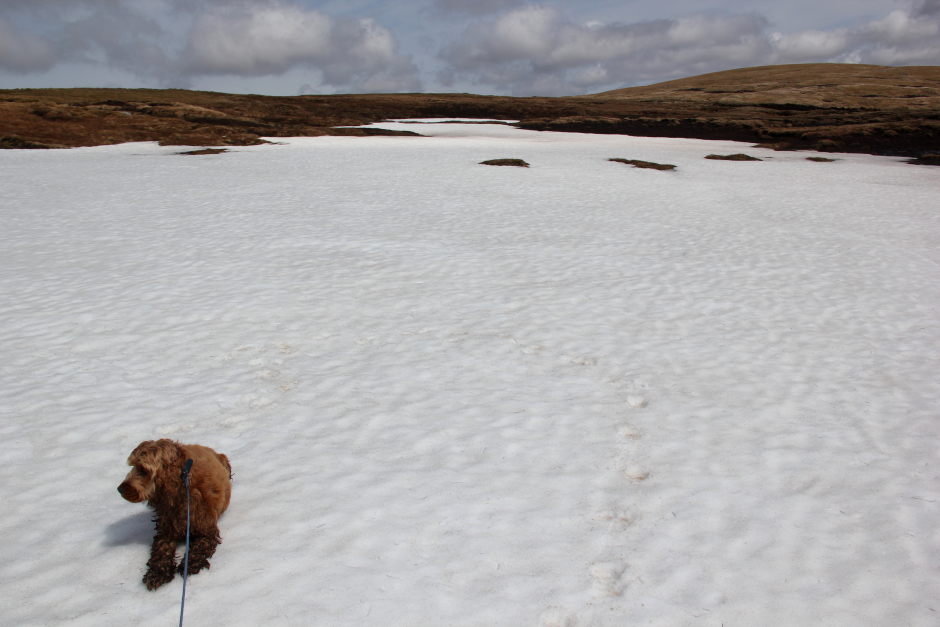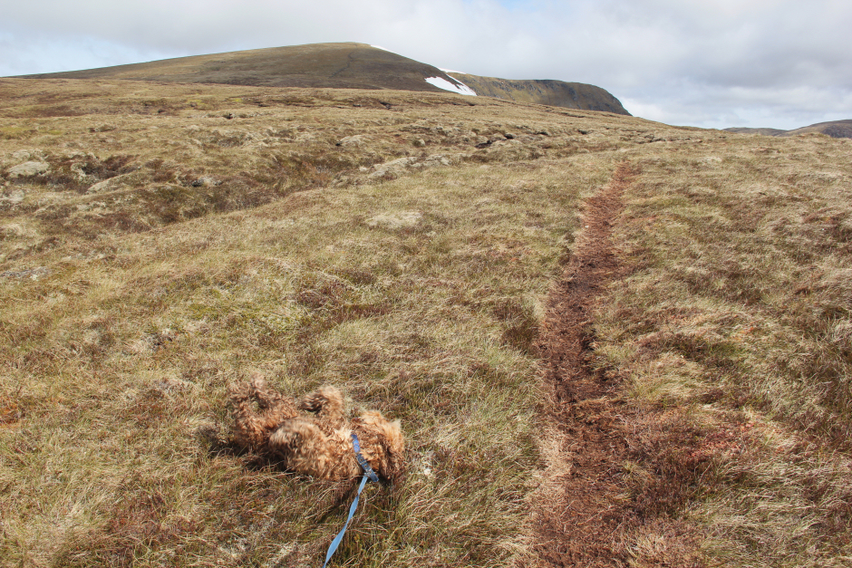 As it was fairly hot today, I dunked Cuillin in several burns and large puddles to keep him cool. Whenever I stopped, he tried to dry himself off by rolling on the ground.