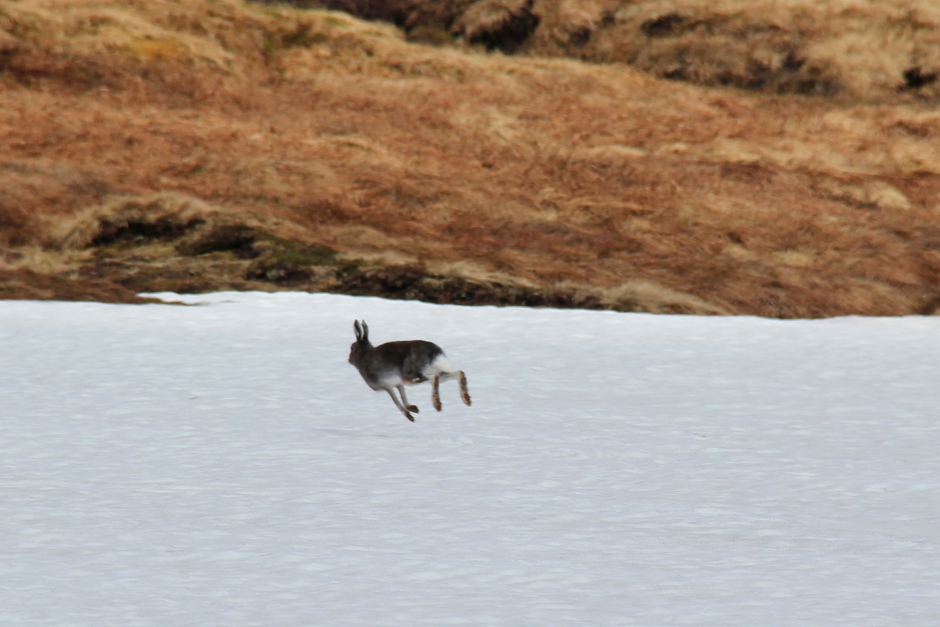 We passed several snow patches during the ascent of Carn Sgulain. As we crossed one of the snow patches, a hare ran