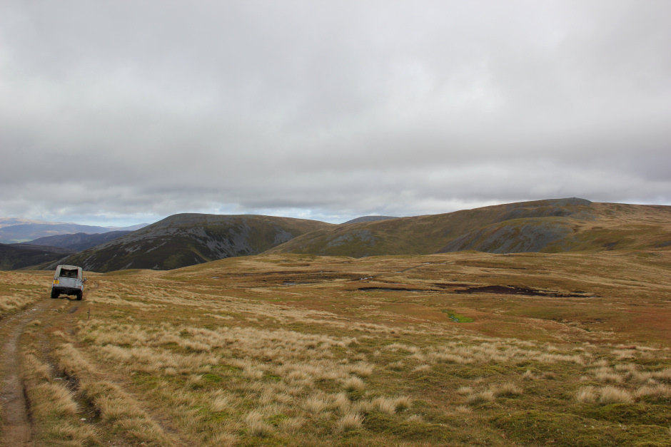Land Rover driving between Glas Maol and Cairn of Claise:
