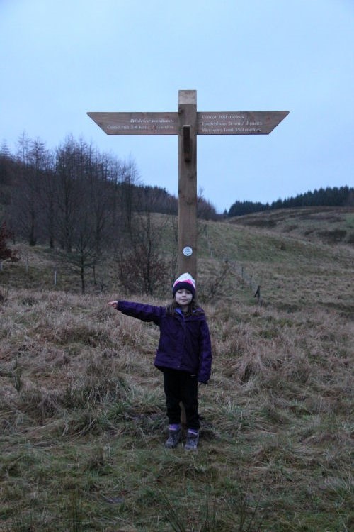 A short distance beyond Carrot, we came to the first of several marker posts. It would appear there are two way-marked routes to Corse Hill. We opted for the shorter 3.4km/2.25 mile route to the summit.
