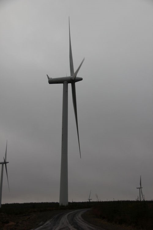 En-route to the summit, it is necessary to walk directly underneath two of the turbines. I am always nervous walking underneath these monstrous fast-spinning blades. Given the temperature today was +7C, at least there was little chance of ice falling from the blades.