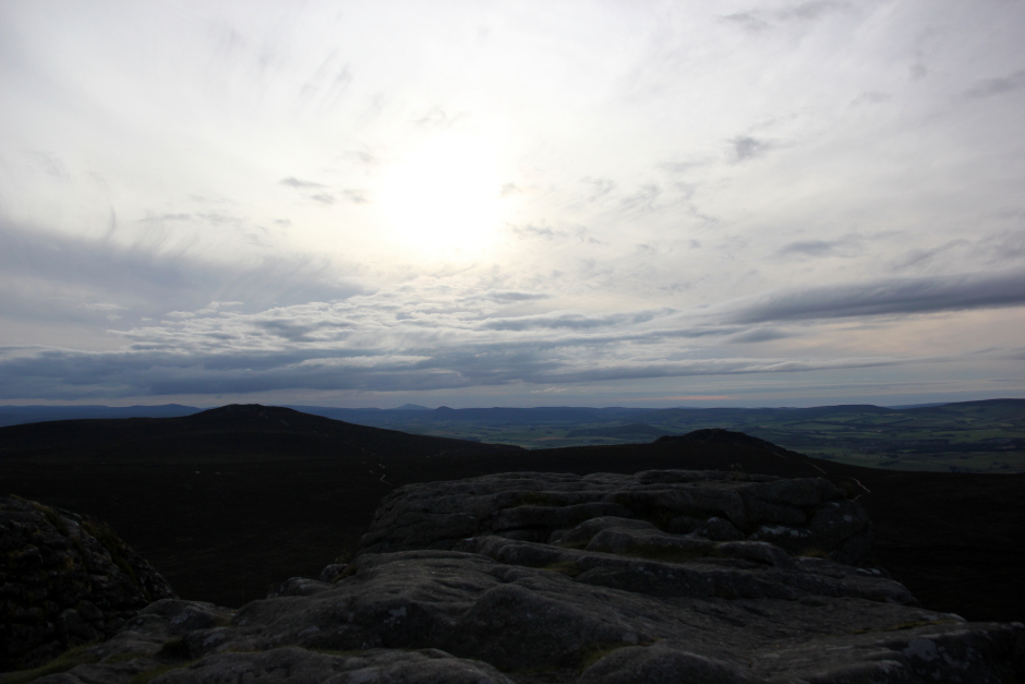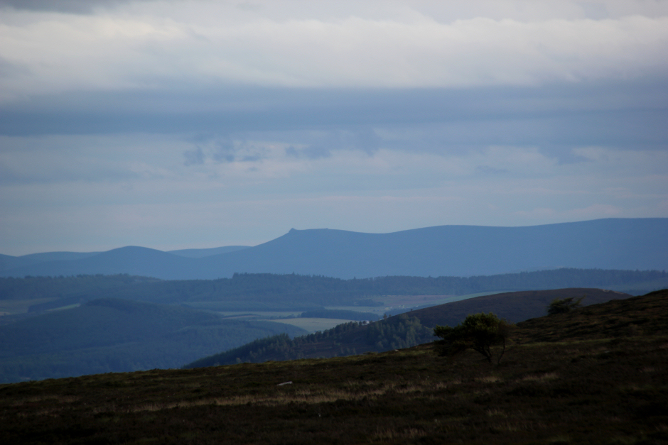 The visibility was fairly good as I could see Knock Hill and Bin of Cullen, Tap o' Noth and the Buck, Mount Keen and Lochnagar and even Clachnaben easily identifiable from its summit tor.