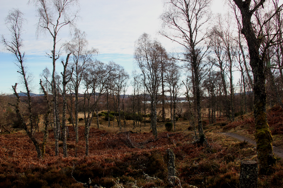 Birchwood with Loch Kinord in the distance: