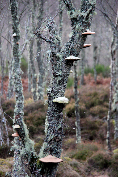 Bracket fungus on dead birch: