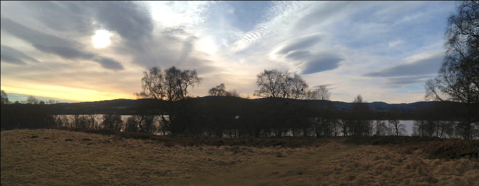 I used my iPhone to take a panoramic picture of Loch Kinord from just above the Cross Slab.